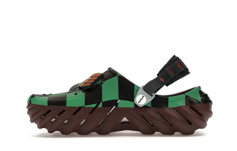 This Croc Echo Clog featured a molded foam upper that was done up in black and green with a checkerboard pattern. It also had Demon Slayer branding on it along with several features designed to make it more comfortable, such as a LiteRide drop-in footbed to improve cushioning and ventilation ports that were strategically positioned to make it as breathable as possible.