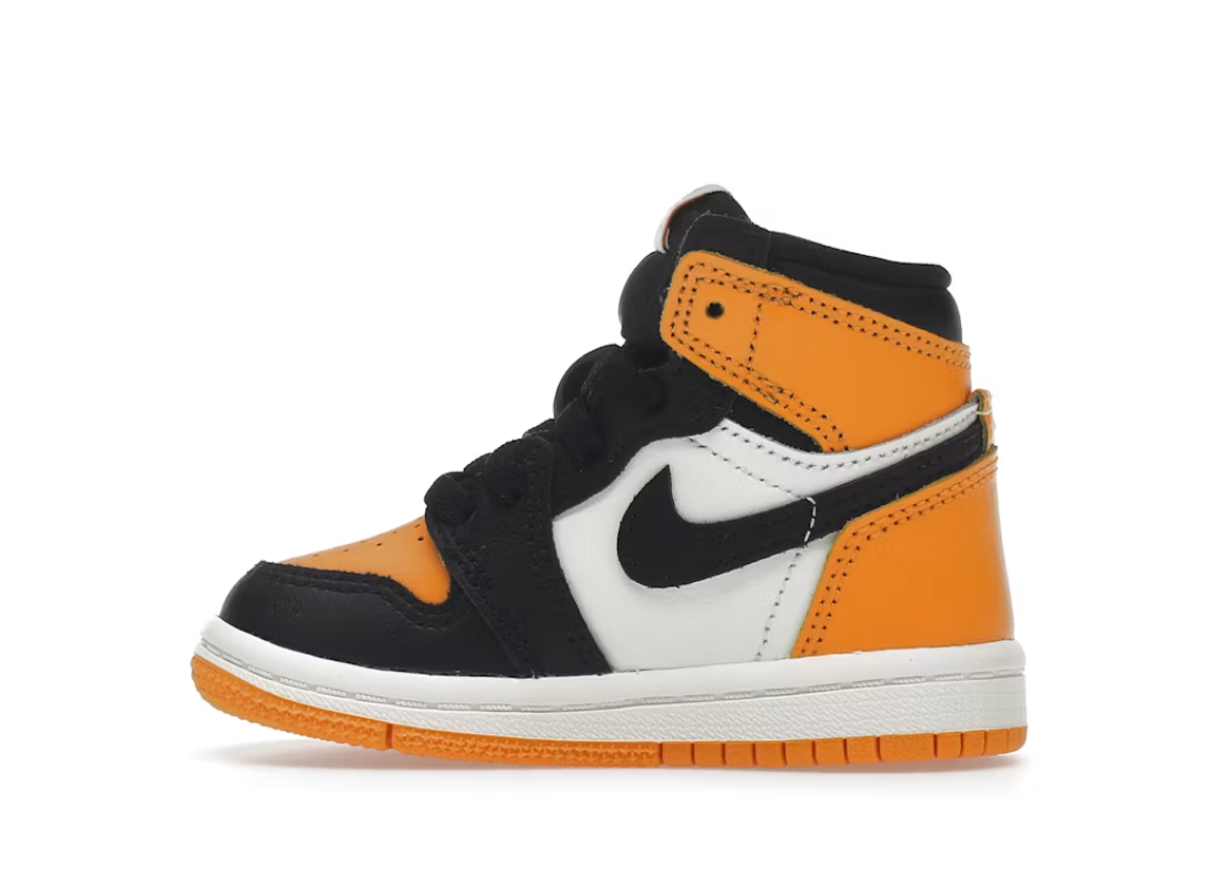 The Jordan 1 Retro High OG Taxi (TD), a high-top specifically sized for toddlers, brings back the color blocking first used in the Air Jordan 1 – "Bred Toe."