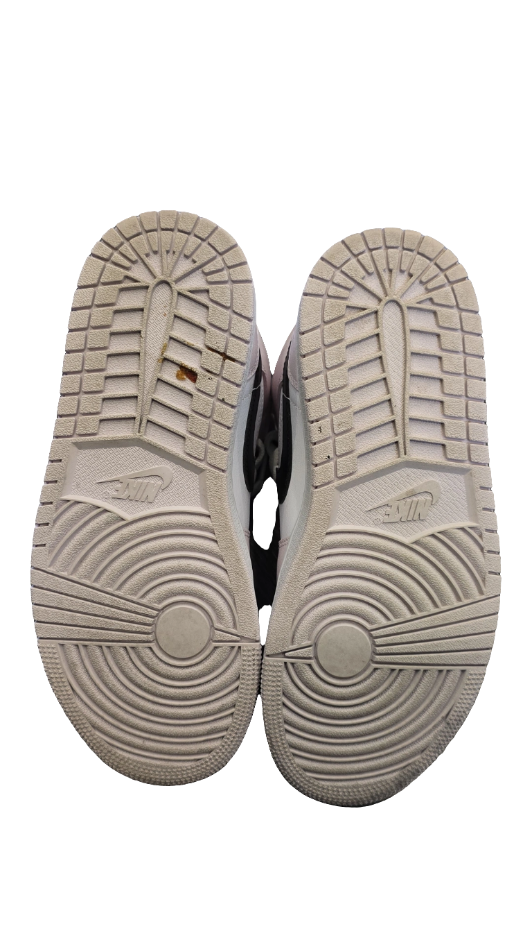 The women's Air Jordan 1 Mid Barely Rose (W) brings a light pastel color to the ever-growing line of women’s exclusive Jordan 1 Mids. The women's Air Jordan 1 Mid Barely Rose (W) is equipped with Barely Rose and white leather overlays on its upper. From there, a black Nike Swoosh on each side of the sneaker provides a bold contrast from the otherwise lightly colored sneaker. Matching black inner lining and "Air Jumpman" tongue tag complete this retro Jordan sneaker.